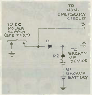 Este circuito coloca a bateria no circuito quando a tensão de uma fonte é cortada evitando que ele deixe de ser alimentado. A ideia é de uma Radio Electronics de março de 1985.