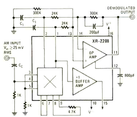 Este circuito foi encontrado na revista Radio Electronics de abril de 1978. A alimentação deve ser simétrica e a frequência máxima de operação está em torno de 100 MHz.