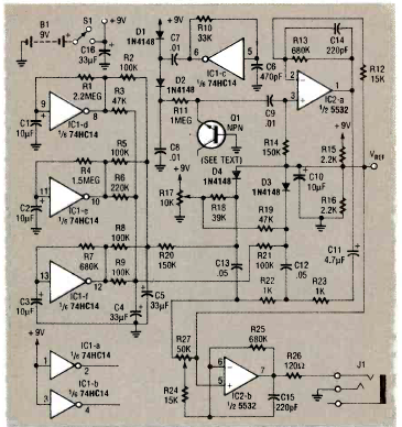 Este circuito denominado “surf man” foi publicado na revista Radio Electronics de agosto de 1992. Ele produz o som das ondas para relaxamento.