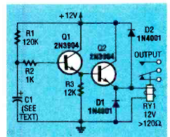 Este circuito de retardo para relé foi encontrado na revista Electronics Now de outubro de 1993. O tempo é dado por R1 e C1 podendo ser alterado.