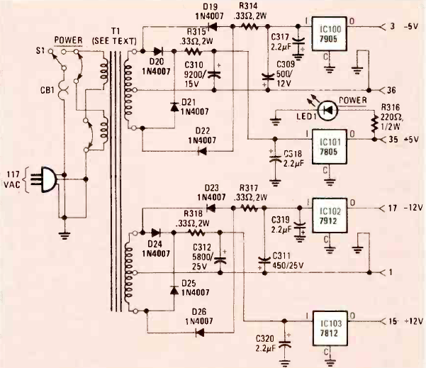 Para alguém que deseja aproveitar um transformador duplo numa boa fonte encontramos este circuito que faz parte de um artigo da revista Radio Electronics de outubro de 1982. Os integrados devem ser dotados de dissipadores de calor.