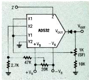 Encontrado na revista Electronics Now de julho de 1993 este circuito fornece uma tensão de saída cujo valor é a raiz quadrada da tensão de entrada.