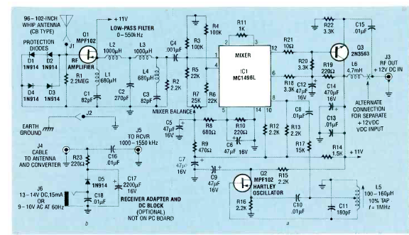 Com este circuito da revista Radio Elecrtronics de setembro de 1989, é possível receber num rádio comum sinais da faixa de VLF como os sinais emitidos pelo receptor anterior.