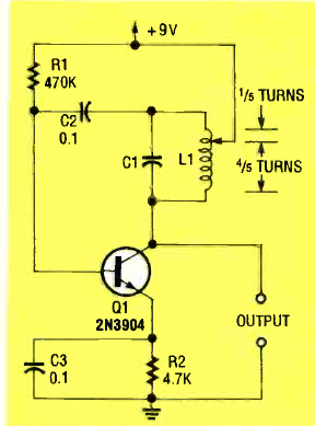 Encontrado na revista Electronics Now de dezembro de 1993 este oscilador tem a configuração clássica. A frequência depende de L1, podendo chegar a algumas dezenas de megahertz.