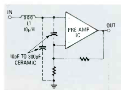 A finalidade deste circuito é eliminar RF captada por um toca-discos. O circuito é de uma Radio Electronics de fevereiro de 1990. Os capacitores devem ser cerâmicos.