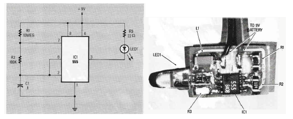 Este pisca-pisca de LEDs foi descrito na revista Radio Electronics Experimenter edição especial de 1989. Ele foi criado para ser montado com componentes SMD.