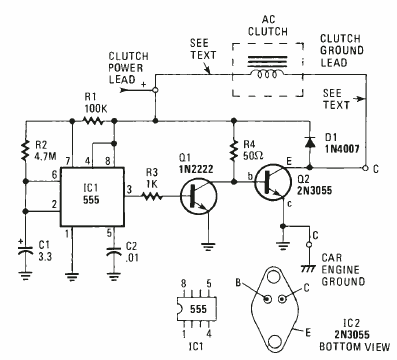Este circuito liga e desliga seu ar-condicionado ou outro eletrodoméstico em ciclos ajustáveis para economizar energia. O circuito e de um Electronics Expeimenter Handbook Special projects de 1983.