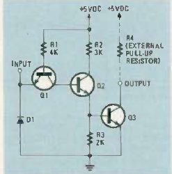 Esta é uma versão equivalente discreta de uma porta TTL com coletor aberto. O que temos é um circuito inversor com 3 transistores comuns.