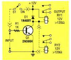 Na figura temos um shield simples de 1 transistor. A tensão de alimentação depende do relé. O circuito é de uma Electronics Now de novembro de 1993.