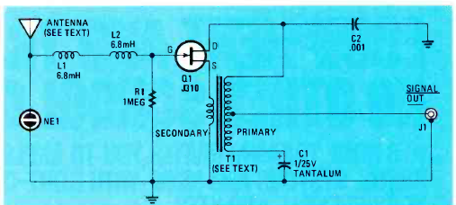 Este circuito para a faixa de frequências muito baixas foi encontrado na revista Radio Electronics de fevereiro de 1983. Os componentes são de acordo com a faixa de frequências a ser amplificada.