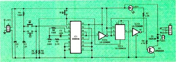 Este circuito foi encontrado num artigo da revista Electronics Now de junho de 1998. O sensor consiste num alarme de pêndulo em que um objeto de metal pode vibrar com o terremoto encostando num aro em torno dele.
