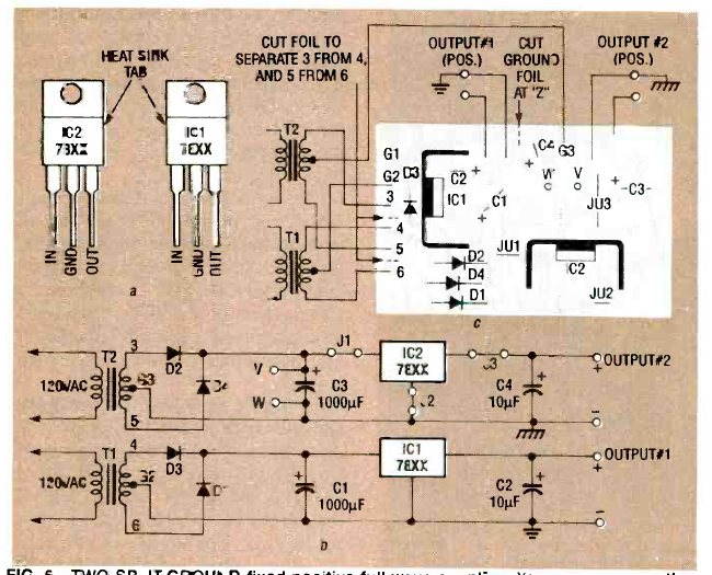 Este circuito apareceu na revista Radio Electronics de junho de 1990. Os circuitos integrados devem ser dotados de dissipadores. Corrente e tensão dependem dos Cis usados.