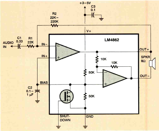 Encontramos na revista Electronics Now de novembro de 1999 este pequeno amplificador de áudio. O circuito integrado utilizado não é muito comum atualmente.