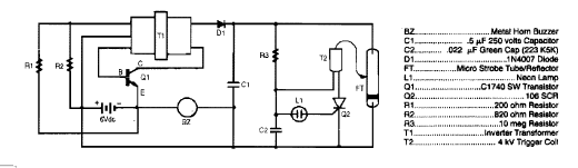 Encontrado na Enciclopédia de Circuitos Eletr}onicos volume 5 de 1995, este circuito usa um transformador. O circuito alimenta um transformador que produz 200 V para uma lâmpada de xenônio.