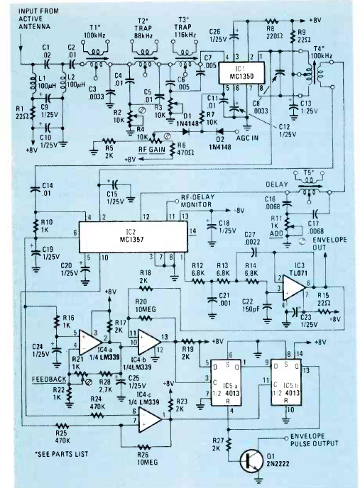 Este circuito para sinais de baixas frequências do sistema de orientação Loran foi descoberto na revista Radio Electronics de julho de 1983. O circuito foi descrito num artigo que ensina sua montagem.