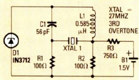 Este oscilador com diodo túnel foi encontrado na revista Radio Electronics de julho de 1986. Observe a baixa tensão de alimentação.