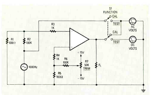 Este simples provador de amplificadores operacionais foi publicado na revista Radio Electronics de novembro de 1987. A alimentação deve ser de acordo com o operacional testado.