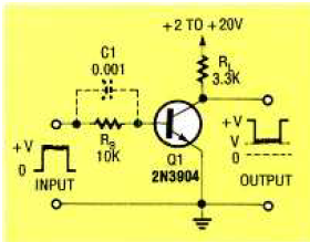 Na figura temos o modo simples de se obter um inversor digital usando um transistor de uso geral. A alimentação do coletor determina a lógica de saída.