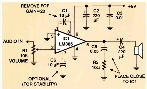 No diagrama da revista Electronics Now de novembro de 1999 temos o modo de se melhorar tanto o ganho como a estabilidade do amplificador LM386.