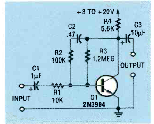 Usando um transistor de uso geral este amplificador AC foi encontrado na revista Electronics Now de novembro de 1993.