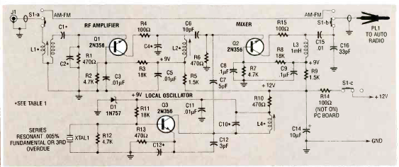 Este conversor tem as bobinas de acordo com as faixas de frequência de recepção e convertidas. Encontramos na revista Radio Electronics de outubro de 1989 num artigo que ensina sua construção.
