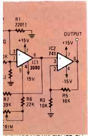 Encontrado na revista Radio Electronics de julho de 1983, este circuito utiliza um amplificador operacional de transcondutância. A fonte de alimentação deve ser simétrica.