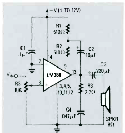 Este circuito foi encontrado na revista Radio Electronics de março de 1990. O circuito pode ser usado em sistemas de som pequenos ou caixinhas de som.