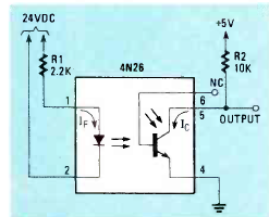 Na figura temos o modo de se interfacear um sinal de 24 V com lógica TTL usando um acoplador 4N26. O circuito é de uma Radio Electronics de maio de 1985.