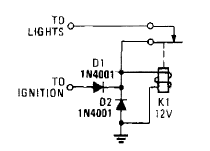 Este circuito avis se você esquecer a luz do carro acesa e sair dele. O circuito é de uma Popular Electronics dos anos 90. O relé é de baixa potência.