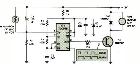 Encontrado na revista Electronics Now de fevereiro de 1997, este circuito controla motores de acordo com o transistor utilizado. Para o transistor indicado, a corrente máxima é de 200 mA.