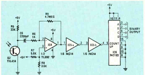 Este parai circuito para receber os sinais do transmissor anterior. O circuito usa um fototransistor comum. Foi encontrado na revista Radio Electronics de agosto de 1984.