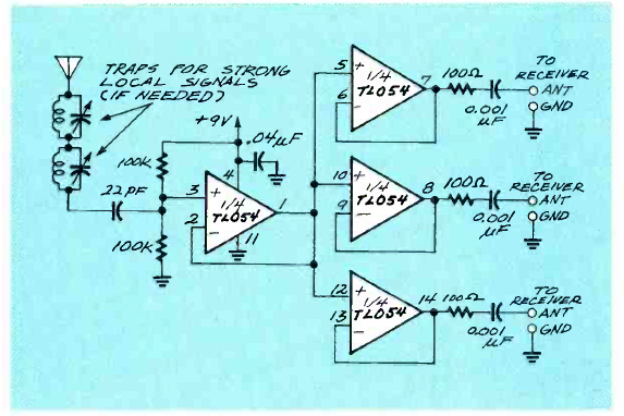 Este circuito pode ser usado com 3 receptores e se destina a baixas frequências (faixa de ondas médias). Encontramos na revista Electronics Now de setembro de 1995.