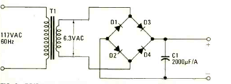 Esta fonte sem regulagem usa um transformador de enrolamento secundário único. A tensão do secundário determina a tensão de saída e os diodos devem ser de acordo com a corrente do transformador.
