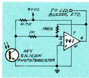Este circuito pode ser usado para obter sinais de controle a partir de uma fonte emissora de infravermelho. O circuito é de uma revista Electronics Now de maio de 1993.