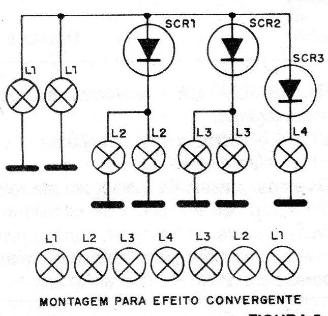 Veja também que temos lâmpadas montadas em dobro em alguns SCRs para que obtenhamos o efeito de seta convergente ou divergente, conforme sugere a figura 5.