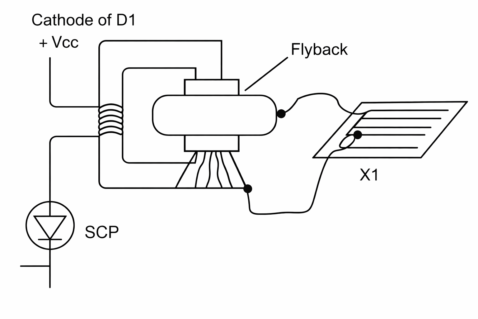 Tensões muito altas podem ser geradas usando um transformador horizontal ou um transformador flyback, como o mostrado na Figura 6 no circuito básico.