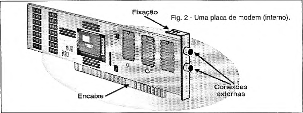 O que se instala num computador é o modem interno que consiste numa placa com o formato mostrado na figura 2 e que se encaixa num slot livre do PC.