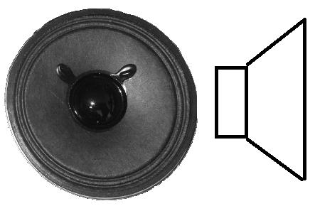 O símbolo eletrônico representando um alto-falante também é mostrado nesta figura. Existem muitos modelos de alto-falantes, mas todos executam a mesma função, convertem impulsos eletrônicos em sons ou tons. A figura 4 mostra outro modelo de alto-falante ou alto-falante.