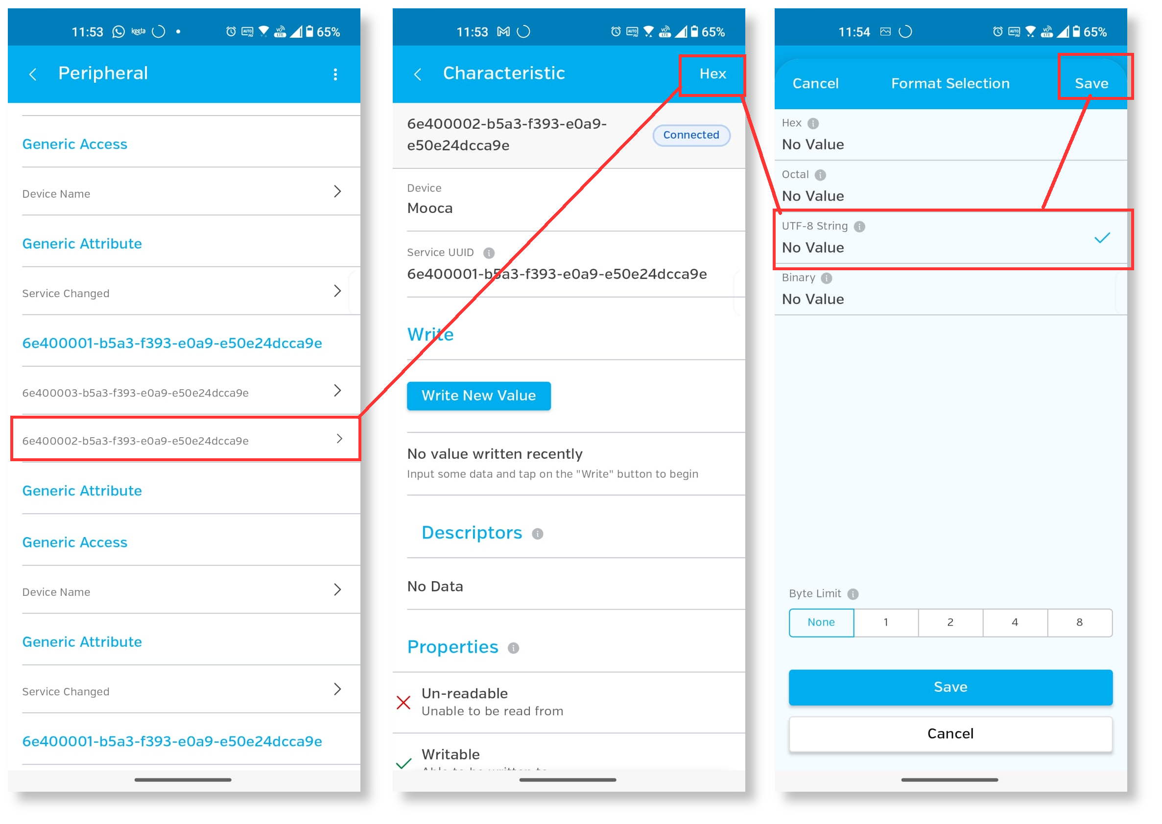 bluetooth.UUID("6E400002-B5A3-F393-E0A9-E50E24DCCA9E"),