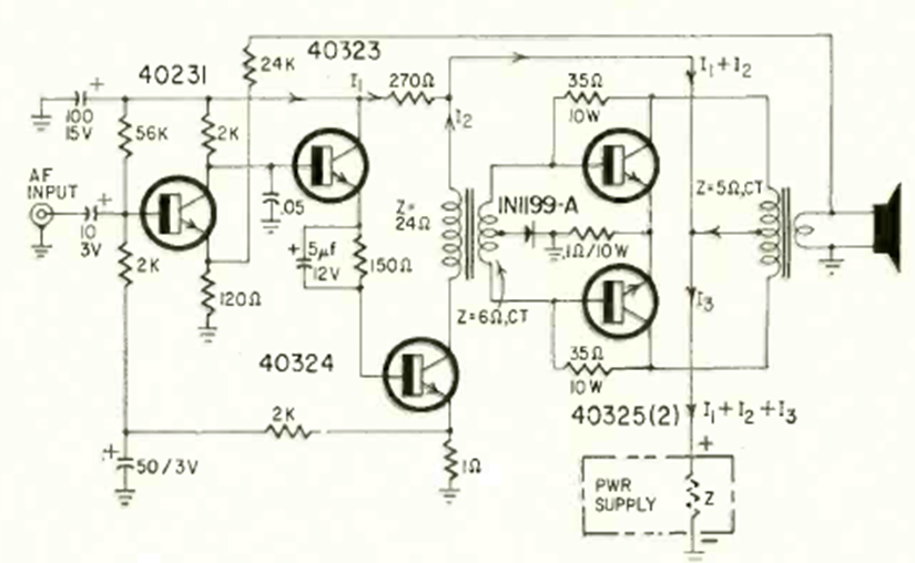 Naquela época havia então alto-falantes apropriados para este tipo de circuito, que tinham impedância que se casava com essas etapas de saída sem a necessidade de se empregar um transformador de saída.