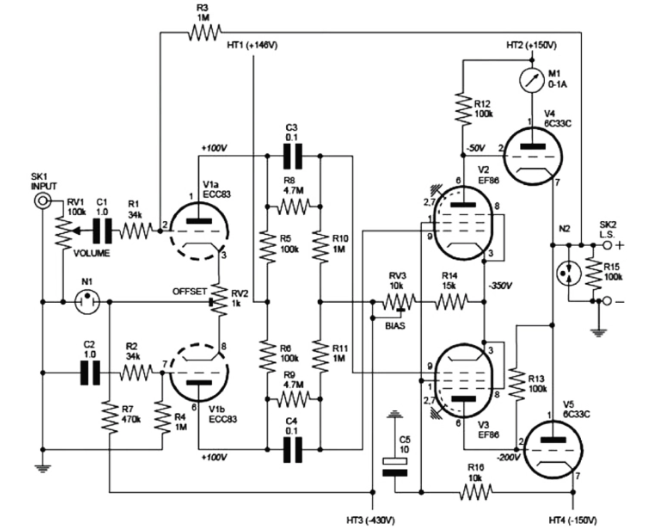 A impedância não é tão baixa como a que obtemos com circuitos transistorizados, mas suficiente baixa para podermos usar alto-falantes até uns 200 ohms, o que ocorria no passado.