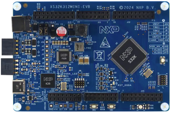 A Placa de Avaliação NXP Semiconductors S32K312MINI-EVB é uma plataforma poderosa e versátil para diversas aplicações embarcadas, particularmente em sistemas automotivos, industriais e de IoT. A NXP S32K312MINI-EVB possui um núcleo Arm® Cortex®-M7 com uma unidade de ponto flutuante (FPU) operando a 120 MHz, permitindo a execução de algoritmos avançados para análise de dados e diagnóstico. A placa inclui o NXP SBC FS26, que fornece trilhos de alimentação de +5,0 V e +3,3 V para sistemas em conformidade com ASIL B, tornando-a ideal para aplicações críticas de segurança.