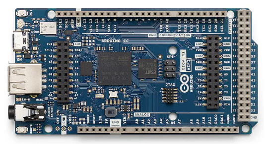 A placa Arduino GIGA R1 WiFi nivela o campo de atuação ao reunir recursos avançados em um componente acessível. Com o mesmo formato dos populares Mega e Due, a GIGA R1 WiFi é a escolha perfeita para usuários prontos para dar um passo à frente na tecnologia. A placa possui o microcontrolador STM32H7 e um processador dual-core (480MHz/240MHz), 76 GPIOs, características avançadas de ADC/DAC e conectores para câmera/tela. Uma interface USB avançada suporta HID via USB-C™ e USB Host (teclado, armazenamento em massa) via um conector USB-A dedicado. Um módulo de rádio Murata 1DX fornece comunicação Wi-Fi e BLUETOOTH®.