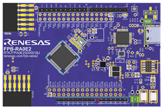 A Placa de Prototipagem Rápida FPB-RA0E2 da Renesas Electronics oferece um ponto de entrada para avaliação, prototipagem e desenvolvimento com o MCU RA0E2. Esta placa incorpora um circuito emulador e pode ser usada sem ferramentas de hardware. A placa de prototipagem FPB-RA0E2 inclui furos passantes para conectores de pinos que permitem acesso aos pinos de sinal do MCU e facilitam a prototipagem com o uso de uma placa de ensaio. Esta placa possui um conector USB 2.0 Tipo C™, um botão de reset e um botão de usuário. Aplicações típicas incluem pequenos eletrodomésticos, automação industrial, canetas inteligentes, rastreadores de segurança pessoal e detectores de odores para banheiro.