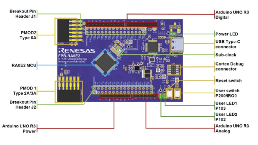 - Fornece um ponto de entrada para avaliação, prototipagem e desenvolvimento com o MCU RA0E2