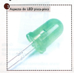 Assim, LEDs como os verdes que exigem pelo menos 2,1 V para acender na versão convencional e que exigem circuitos que forneçam essa tensão, na versão pisca-pisca podem funcionar com apenas 1,2 v, ou seja, apenas uma pilha.