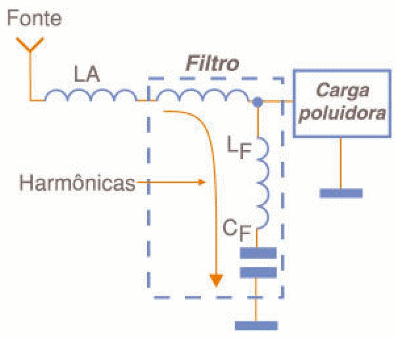 Neste caso, conforme exibe a figura 5, o que se faz é ligar um filtro LC em paralelo com o circuito alimentado, responsável pela poluição da energia.