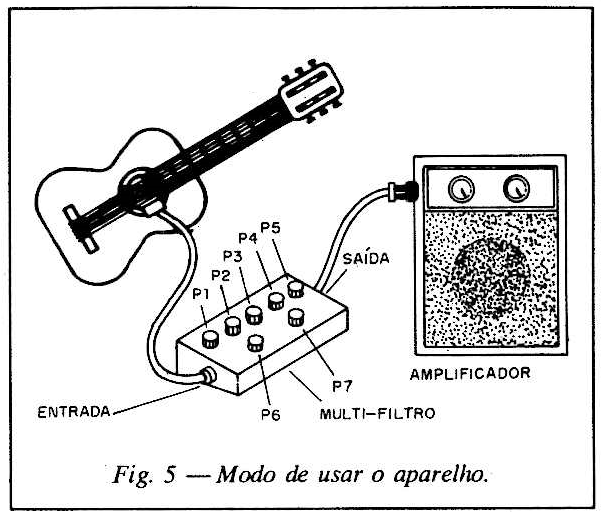 Atuando sobre os potenciômetros de P1 a P5 você deve notar diferenças de tonalidade, com o reforço ou corte de certas notas musicais. Comprovado o funcionamento é só usar. Para isso, ajuste o tipo de reprodução desejada atuando sobre os potenciômetros de acordo com cada tipo de instrumento.