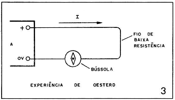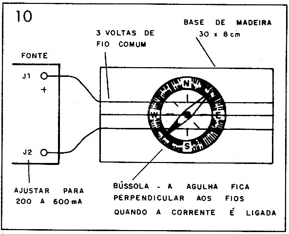 Ao ligar a unidade a agulha da bússola deve ficar perpendicular aos fios condutores, orientando-se segundo o campo magnético criado.