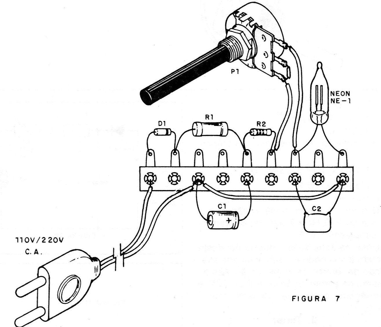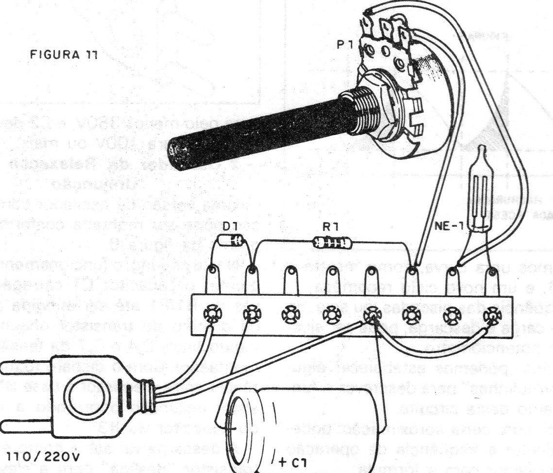 Imediatamente, desligamos o aparelho da rede, iniciando-se a descarga lenta do capacitor através do resistor R1, de P1e da lâmpada neon que se mantém acesa durante o processo.